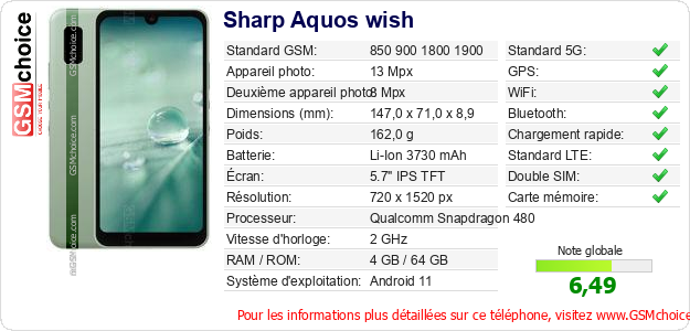 Publier les caractéristiques de ce mobile Sharp Aquos wish sur votre site