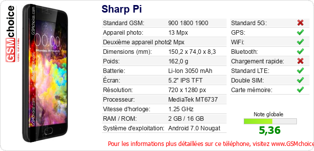 Publier les caractéristiques de ce mobile Sharp Pi sur votre site