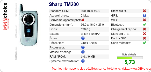 Publier les caractéristiques de ce mobile Sharp TM200 sur votre site