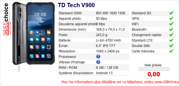 Publier les caractéristiques de ce mobile TD Tech V900 sur votre site