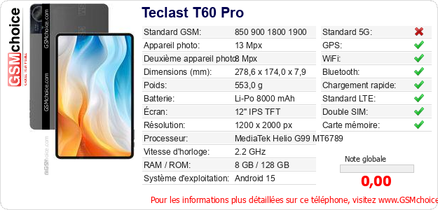 Publier les caractéristiques de ce mobile Teclast T60 Pro sur votre site