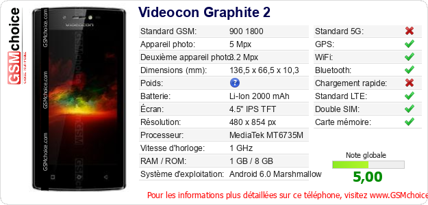 Publier les caractéristiques de ce mobile Videocon Graphite 2 sur votre site