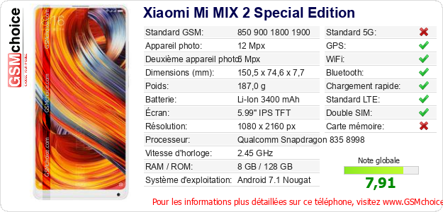 Publier les caractéristiques de ce mobile Xiaomi Mi MIX 2 Special Edition sur votre site