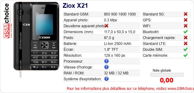 Publier les caractéristiques de ce mobile Ziox X21 sur votre site