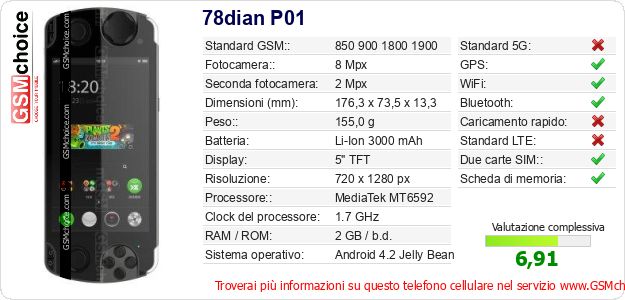 Dati del telefono cellulare 78dian P01 sul tuo sito