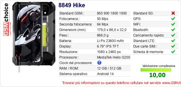 Dati del telefono cellulare 8849 Hike sul tuo sito
