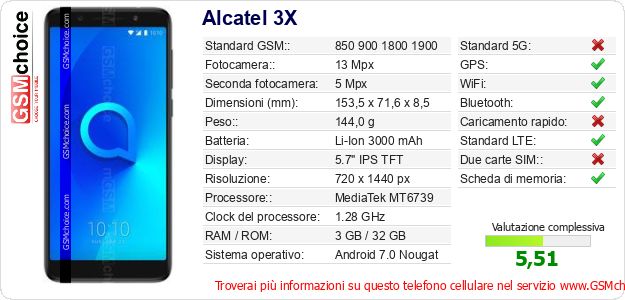 Dati del telefono cellulare Alcatel 3X sul tuo sito
