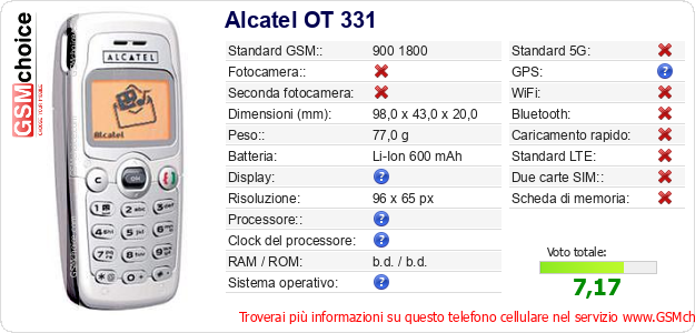 Dati del telefono cellulare Alcatel OT 331 sul tuo sito
