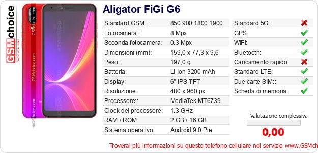 Dati del telefono cellulare Aligator FiGi G6 sul tuo sito