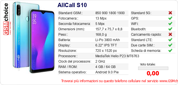 Dati del telefono cellulare AllCall S10 sul tuo sito