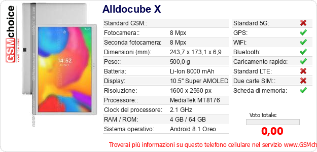 Dati del telefono cellulare Alldocube X sul tuo sito