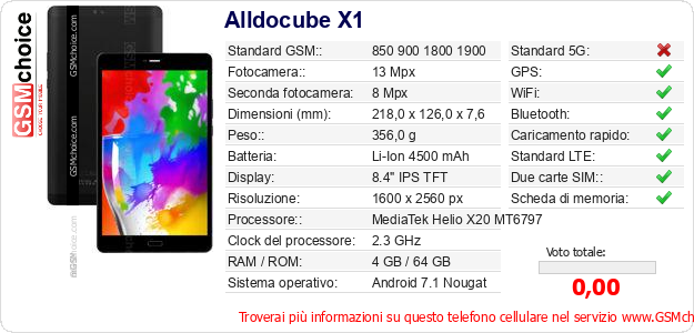 Dati del telefono cellulare Alldocube X1 sul tuo sito