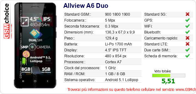 Dati del telefono cellulare Allview A6 Duo sul tuo sito