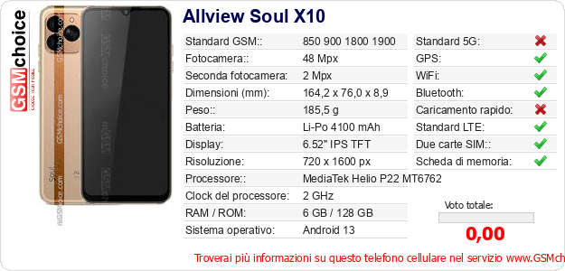 Dati del telefono cellulare Allview Soul X10 sul tuo sito