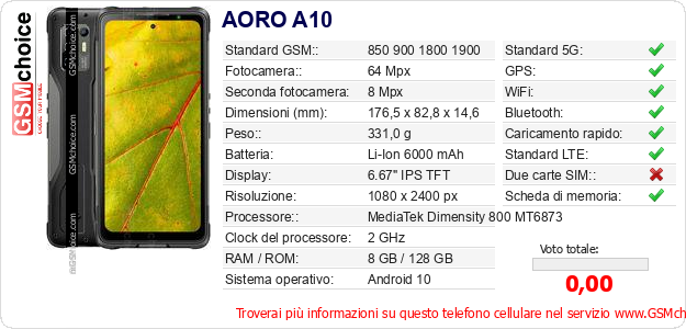 Dati del telefono cellulare AORO A10 sul tuo sito