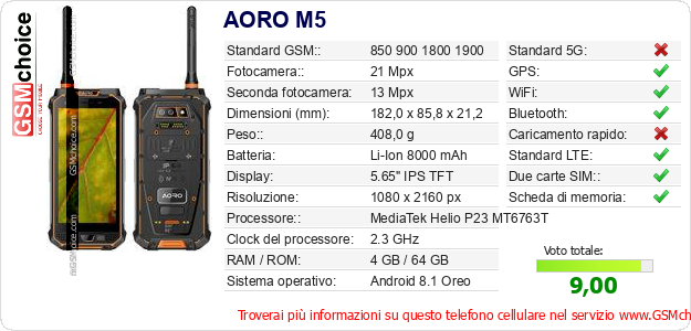 Dati del telefono cellulare AORO M5 sul tuo sito