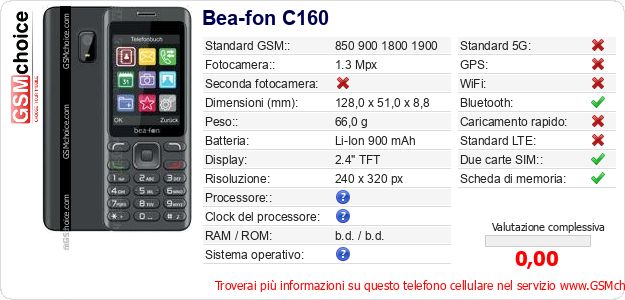 Dati del telefono cellulare Bea-fon C160 sul tuo sito