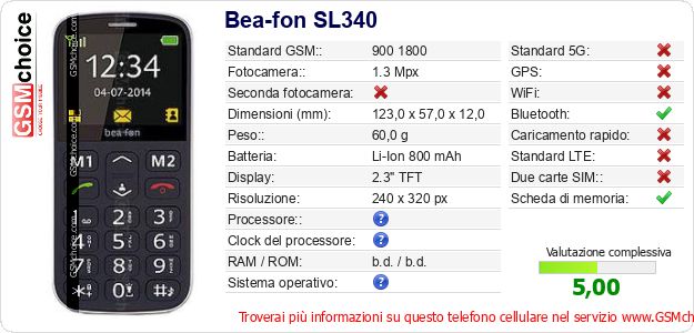 Dati del telefono cellulare Bea-fon SL340 sul tuo sito