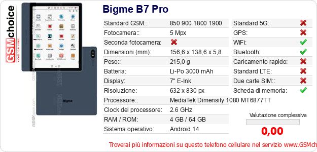 Dati del telefono cellulare Bigme B7 Pro sul tuo sito