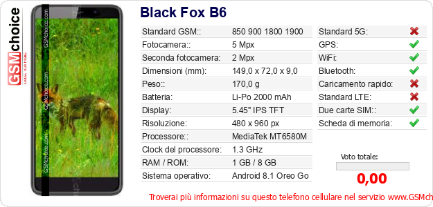 Dati del telefono cellulare Black Fox B6 sul tuo sito