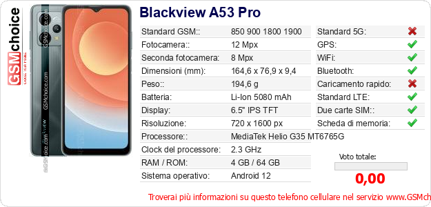 Dati del telefono cellulare Blackview A53 Pro sul tuo sito