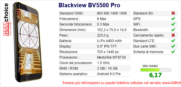 Dati del telefono cellulare Blackview BV5500 Pro sul tuo sito
