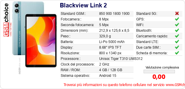Dati del telefono cellulare Blackview Link 2 sul tuo sito