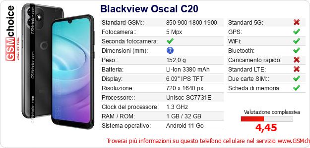 Dati del telefono cellulare Blackview Oscal C20 sul tuo sito