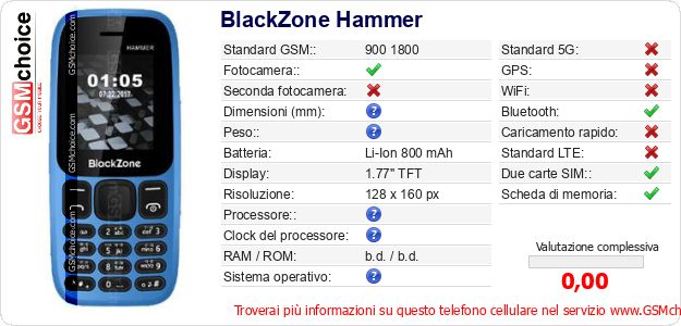 Dati del telefono cellulare BlackZone Hammer sul tuo sito
