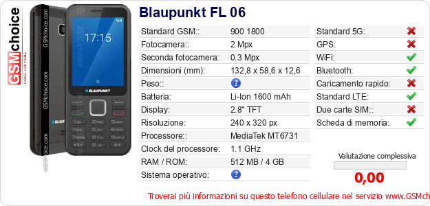 Dati del telefono cellulare Blaupunkt FL 06 sul tuo sito