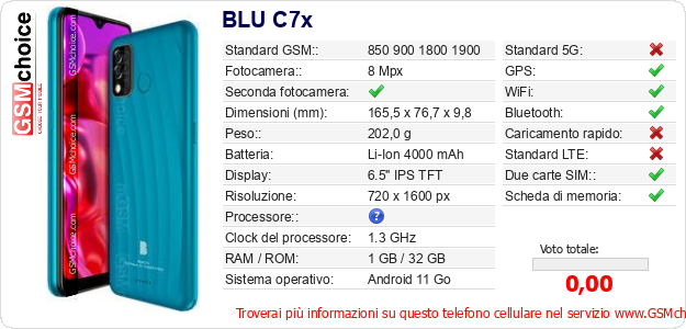 Dati del telefono cellulare BLU C7x sul tuo sito