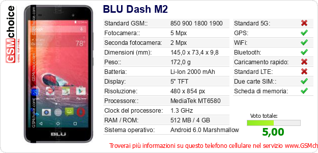 Dati del telefono cellulare BLU Dash M2 sul tuo sito