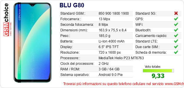 Dati del telefono cellulare BLU G80 sul tuo sito