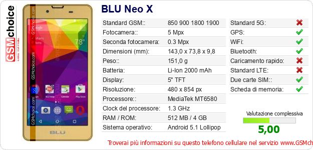 Dati del telefono cellulare BLU Neo X sul tuo sito