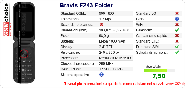 Dati del telefono cellulare Bravis F243 Folder sul tuo sito