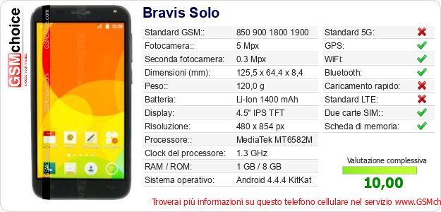 Dati del telefono cellulare Bravis Solo sul tuo sito