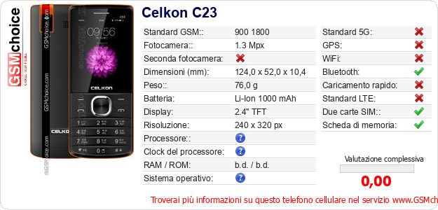 Dati del telefono cellulare Celkon C23 sul tuo sito