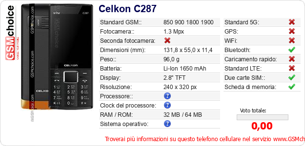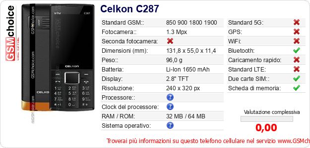 Dati del telefono cellulare Celkon C287 sul tuo sito