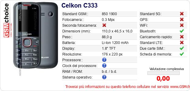 Dati del telefono cellulare Celkon C333 sul tuo sito