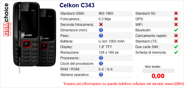 Dati del telefono cellulare Celkon C343 sul tuo sito