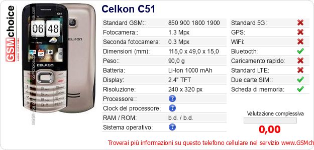 Dati del telefono cellulare Celkon C51 sul tuo sito