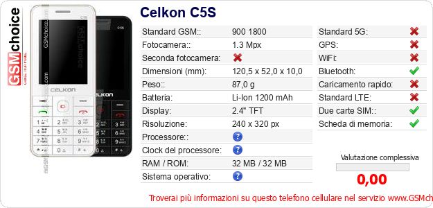 Dati del telefono cellulare Celkon C5S sul tuo sito