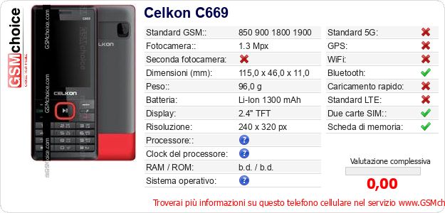 Dati del telefono cellulare Celkon C669 sul tuo sito