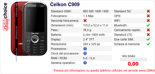 Dati del telefono cellulare Celkon C909 sul tuo sito