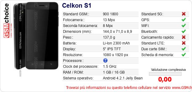 Dati del telefono cellulare Celkon S1 sul tuo sito