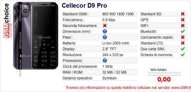 Dati del telefono cellulare Cellecor D9 Pro sul tuo sito