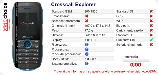 Dati del telefono cellulare Crosscall Explorer sul tuo sito