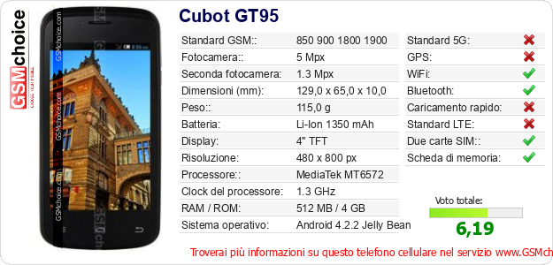 Dati del telefono cellulare Cubot GT95 sul tuo sito