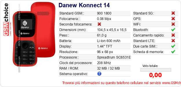 Dati del telefono cellulare Danew Konnect 14 sul tuo sito