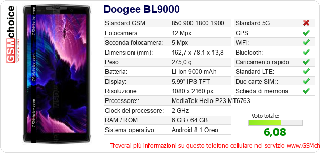 Dati del telefono cellulare Doogee BL9000 sul tuo sito